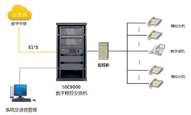 SOC9000系列支持最大物理端口為2048,適用于大中型公司集團(tuán)電話(huà)。