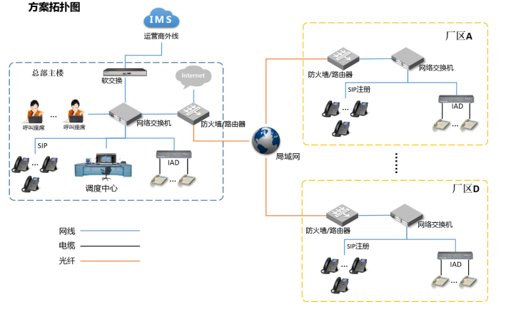 在IP調(diào)度通信軟交換系統(tǒng)統(tǒng)一管理下,實(shí)現(xiàn)分支間的分機(jī)直接互通,及時(shí)響應(yīng),如會(huì)議和廣播模式; 在IP調(diào)度系統(tǒng)統(tǒng)一管理下分支機(jī)構(gòu)可以通地固定站出局當(dāng)?shù)毓潭ɑ蛞苿?dòng)電話, 各分支站點(diǎn),對(duì)過VOIP語音網(wǎng)關(guān)與無線對(duì)講中繼臺(tái)連接,實(shí)現(xiàn)IP調(diào)度中心的指令直接發(fā)送到無線對(duì)講終端,相應(yīng)無線對(duì)講終端也可以通過發(fā)送PPT指令,申請(qǐng)與調(diào)度指揮中心通話;并且可以調(diào)度中心統(tǒng)一管理下,實(shí)現(xiàn)各分支機(jī)構(gòu)之間的通話。