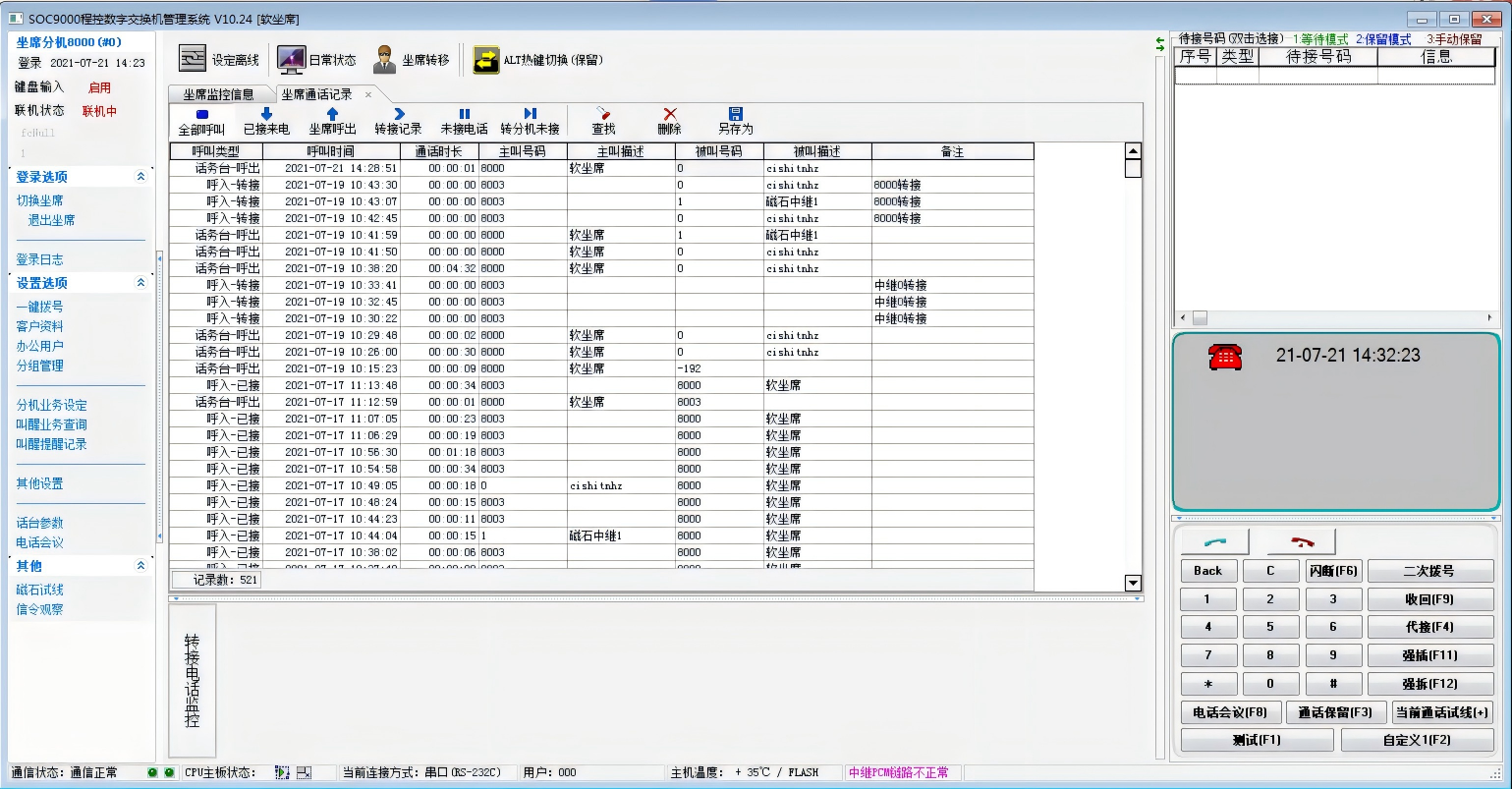 配置雙串口,可同時(shí)與兩臺電腦連接實(shí)現(xiàn)PC話務(wù)實(shí)時(shí)監(jiān)控管理,進(jìn)行編程及數(shù)據(jù)設(shè)置。PC話務(wù)功能強(qiáng)大、操作方便,在豐富的中文菜單提示下,初學(xué)者無須專門培訓(xùn)即可輕松掌握。