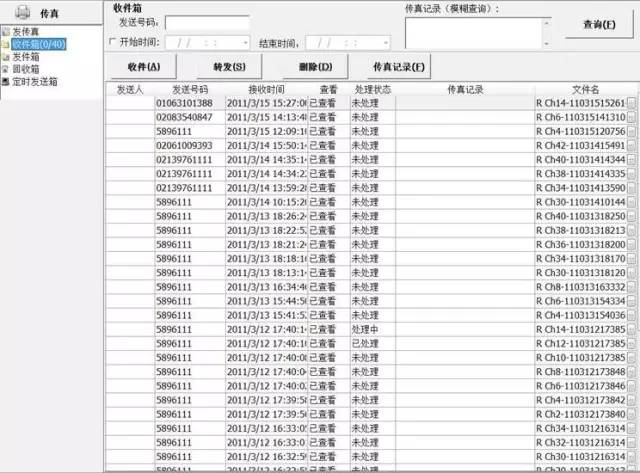 融合通信電子傳真系統(tǒng)通過分配的傳真DID號(hào)碼進(jìn)行傳真的收發(fā)。系統(tǒng)采用多路并發(fā)通道實(shí)現(xiàn)指揮中心電子傳真文件即時(shí)收發(fā)功能,支持傳真文件批量群發(fā)、導(dǎo)入后發(fā)送、發(fā)送記錄查詢、傳真接收提醒、傳真接收后保存、傳真接收后轉(zhuǎn)換編輯、分發(fā)等功能。