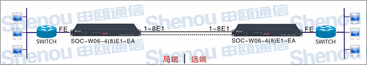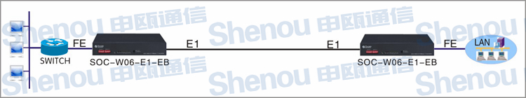 SOC-W06型E1/10Base-T接口轉(zhuǎn)換器(又稱作G.703/以太網(wǎng)接口轉(zhuǎn)換器),是一種利用E1接口傳輸以太網(wǎng)數(shù)據(jù)通信設(shè)備。用于通過廣域網(wǎng)實(shí)現(xiàn)兩個(gè)分離的局域網(wǎng)間的互連,延伸局域網(wǎng)的地域范圍。