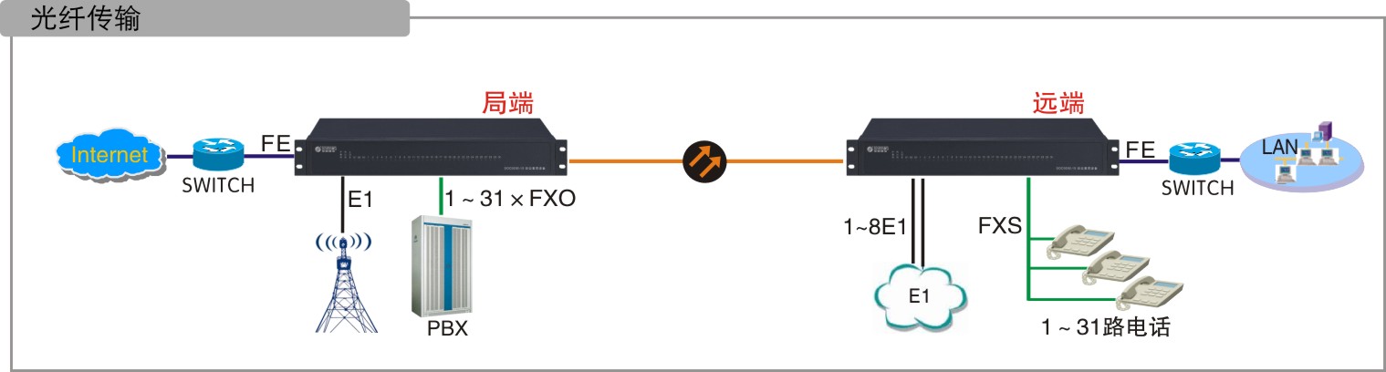 多種傳輸方式:包括E1傳輸、光纖傳輸、HDSL傳輸,點對點/星型/鏈形結構