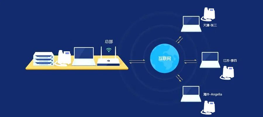 總部與分部組成跨地區(qū)電話專網(wǎng),兩地分機可直撥分機號,實現(xiàn)免費互打。兩地員工間的溝通有效率、更通暢。